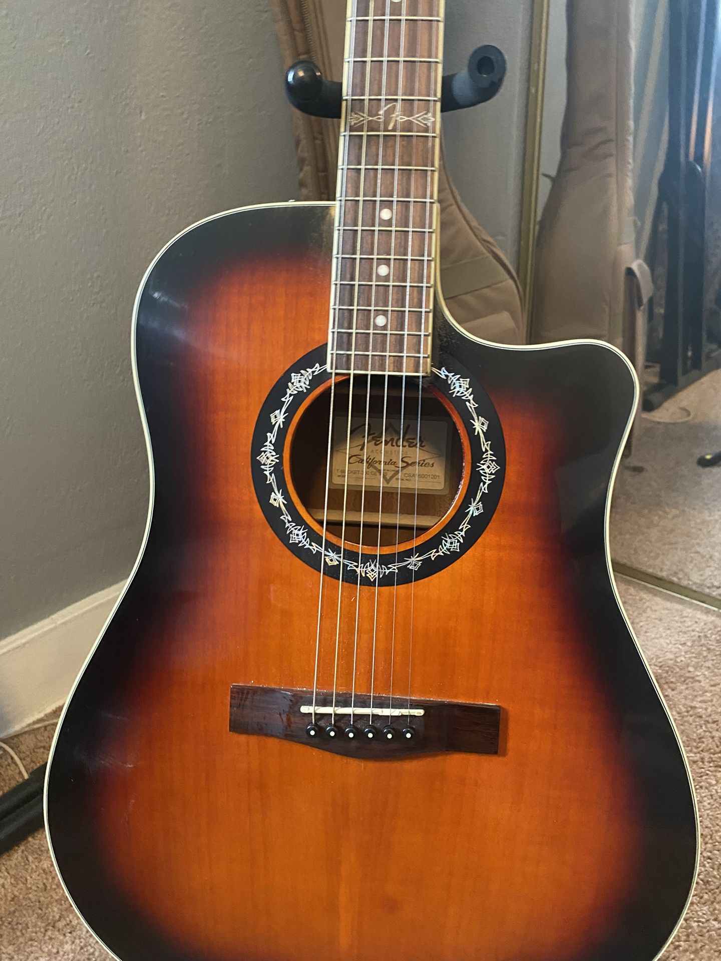 Fender guitar electric acoustic hardly used with Taylor bag and tuner good condition.