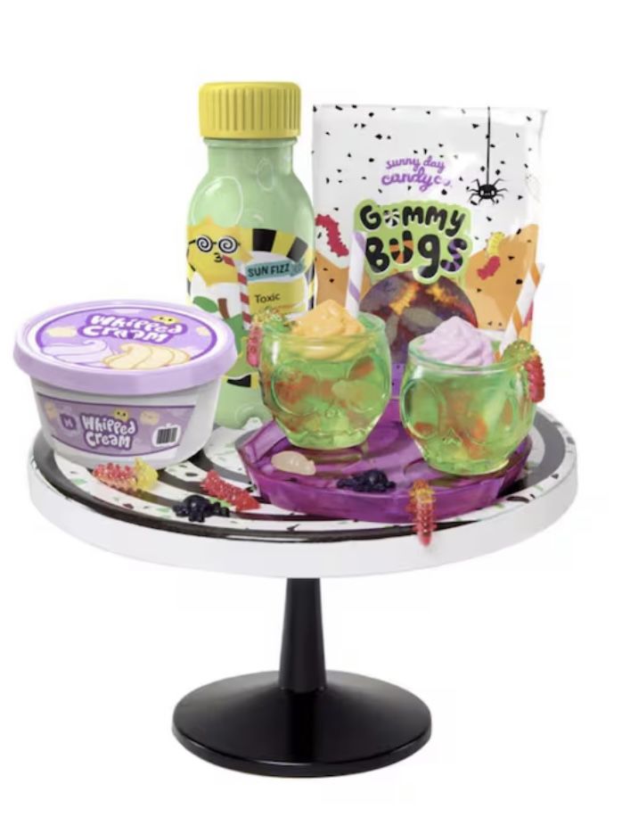 This Miniverse has the first layer revealed and is still wrapped and unopen. This set comes with two miniature skull shaped cups and resin that cures in the sun to decorate your bug punch,and it is from the Halloween collection
