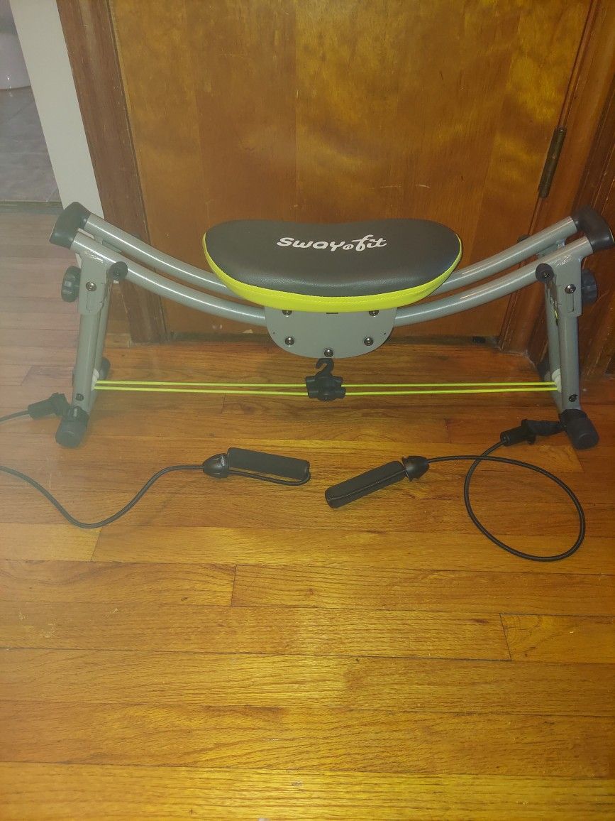Sway N Fit exercise equipment. Meant to help tone mid-section (tummy, waist, core strength). Also includes resistance bands for arm toning. See pic for measurements. Weight limit about 264 lbs (120kg). Pick up in Bellwood.