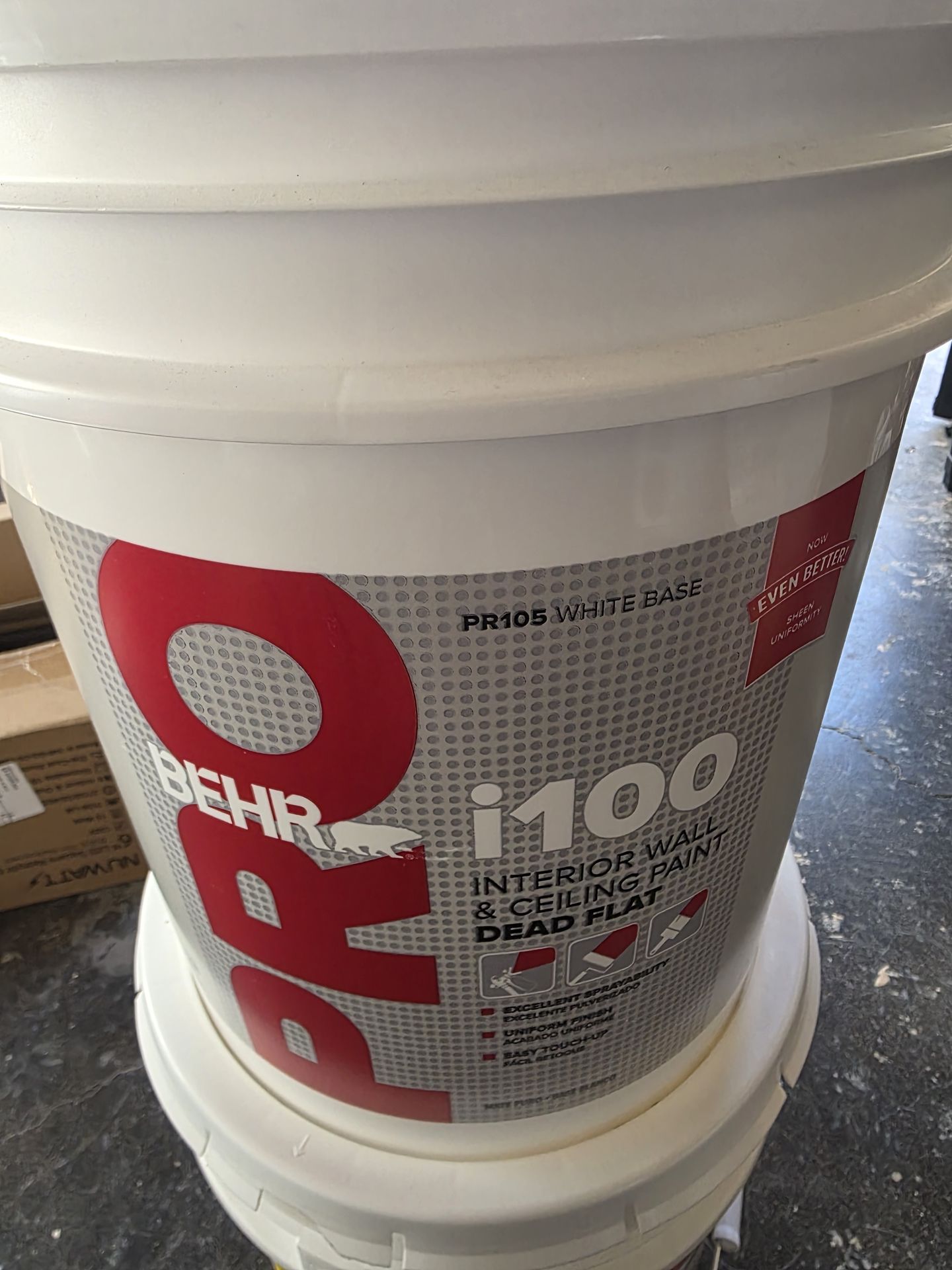 **Brand new!!** BEHR PRO i100 5 gallon dead flat interior paint Bought more than what I needed and need to get rid of it. Sells at Home Depot for $87, letting go for $40!
