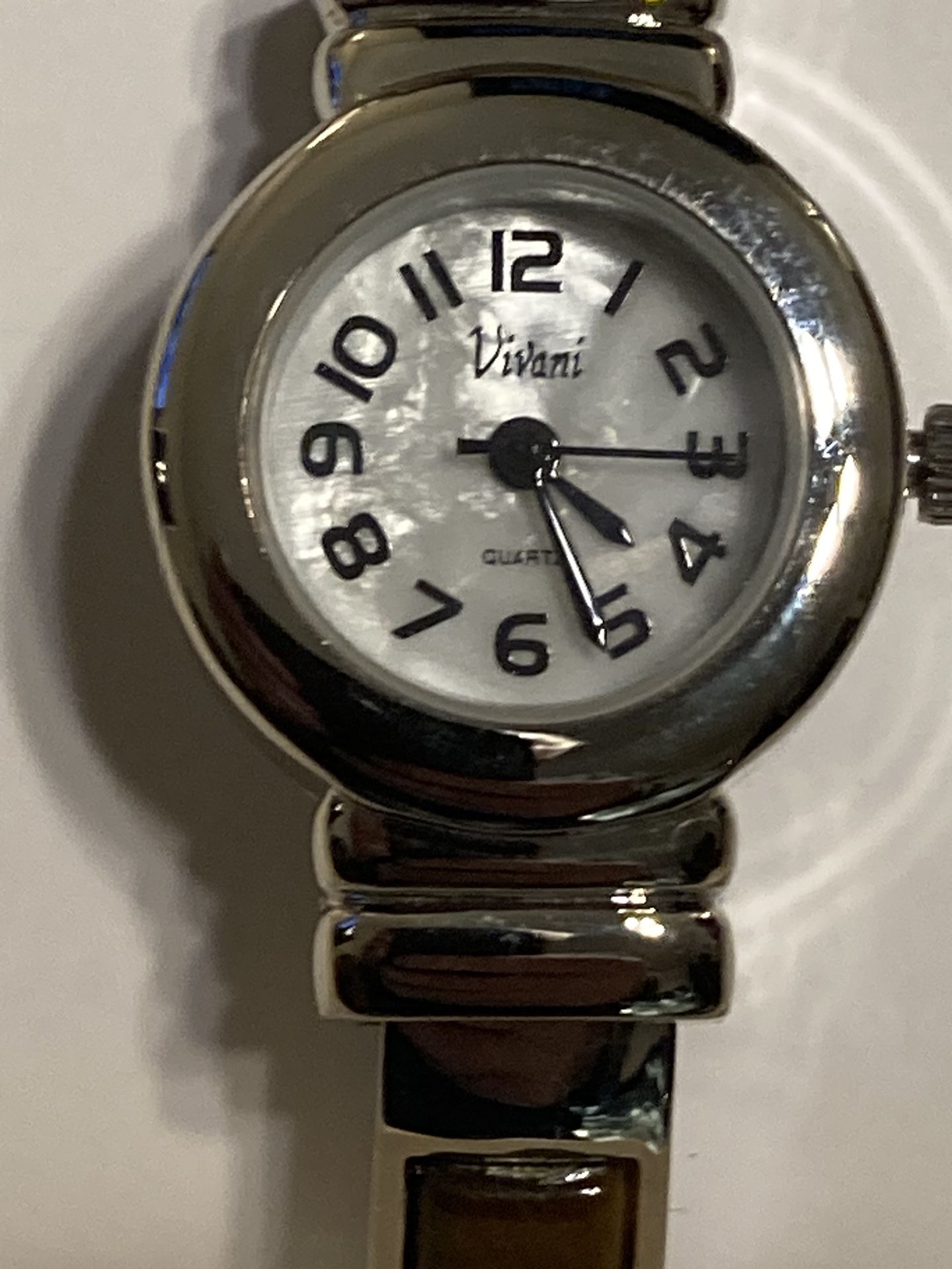 Vivani Silver Tone Classic Style OPAQUE STONES Open Cuff Band Watch. New inbox Please view my other items for sale