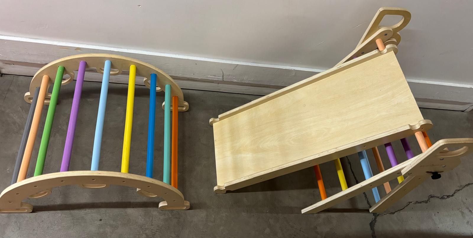 BlueWood Foldable Baby Climbing Toys Wooden Montessori Climbing Set with Arch&Ramp&Ladder Baby Climber Indoor Jungle Gyms for Toddlers Montessori Toys - Rainbow