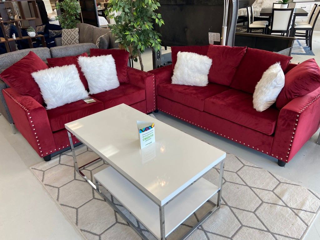 Cinderella red velvet sofa loveseat ❤️✨ we have delivery 🚛👍🏼 only $49 down 👏🏼 (Price:$899)