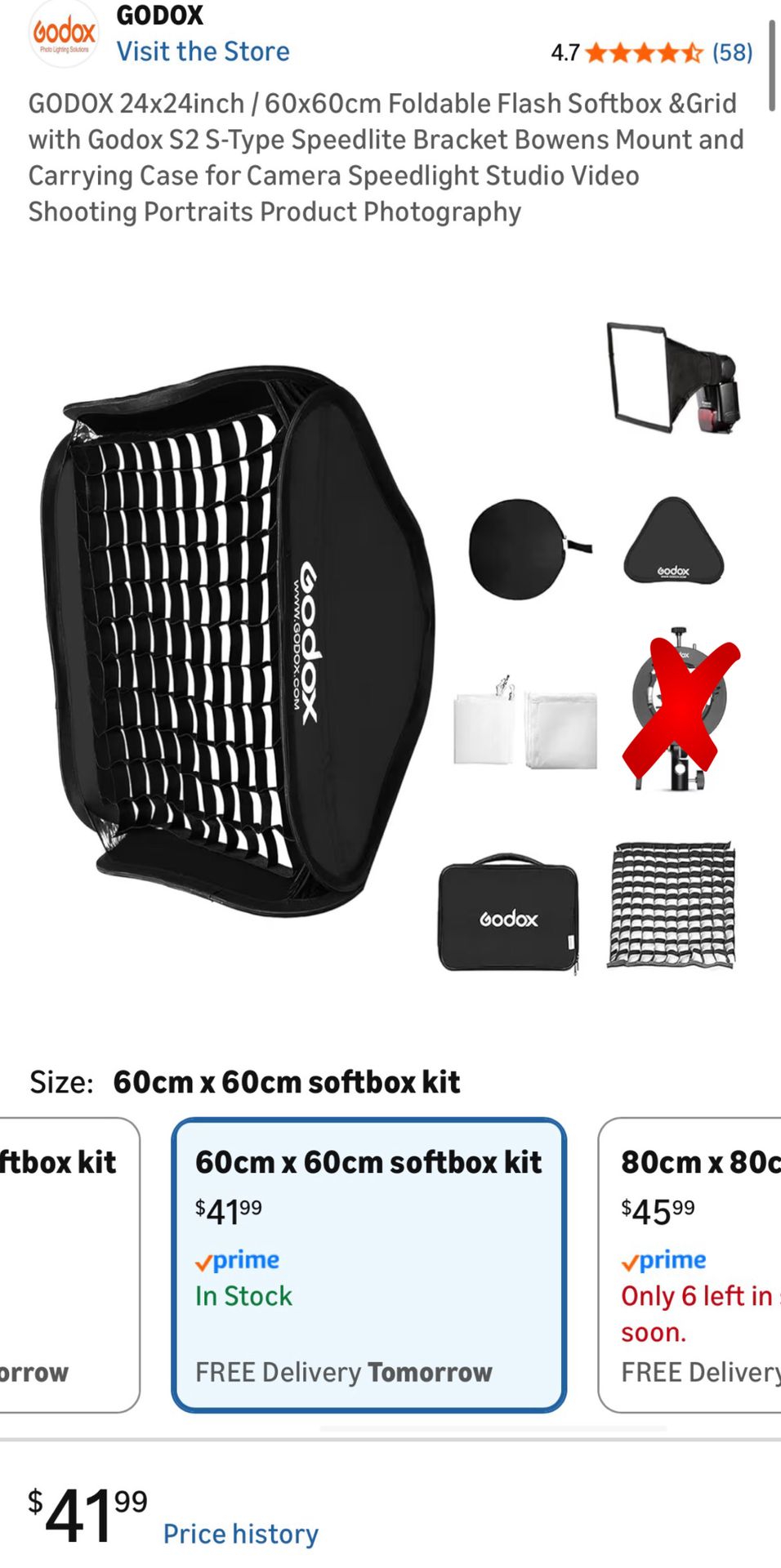 Godox 24x24inch / 60x60cm Foldable Flash Softbox and Grid. Fully functional. S-Bracket not included. 5-Star seller.