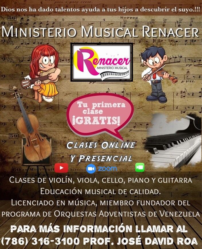 Music Lessons of Violin, viola, Piano and guitar, degree in music and co founder of Adventist Orchestra System of Venezuela contact for more information ๐ป๐ถ๐น๐ธ