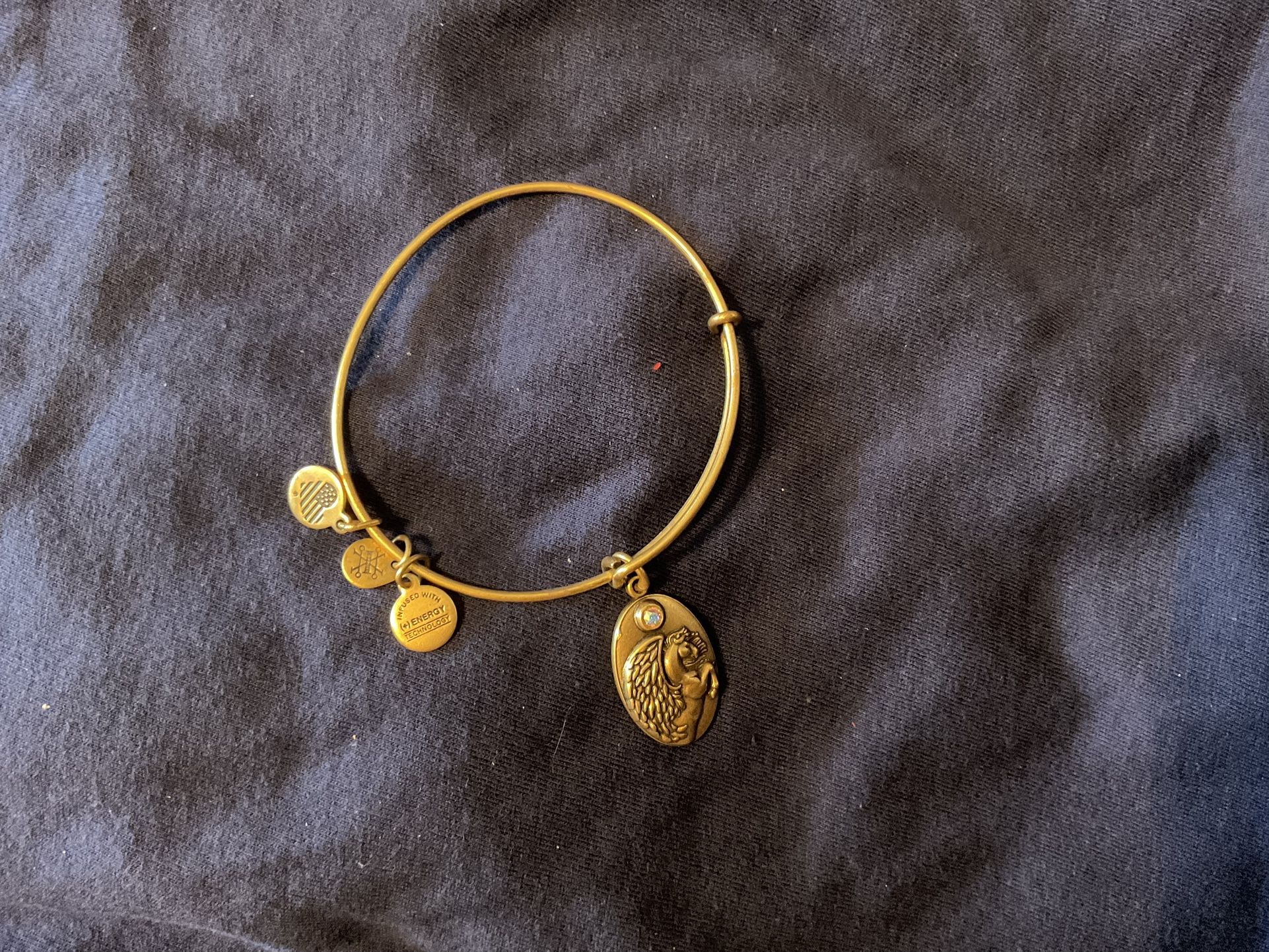 Pretty Alex and Ani brass Pegasus bangle bracelet with Crystal from 2017. Stands for Truth, Muse and Righteousness. Lightly worn. Smoke free home.