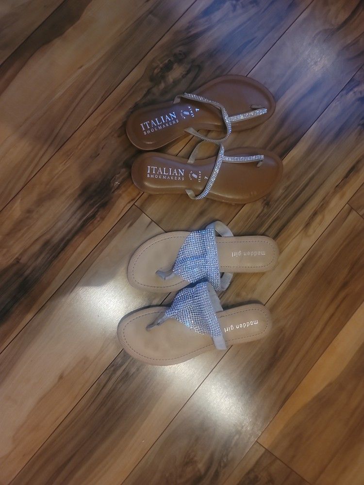 2 pairs blingy silver sandals. 1 Madden Girl, 1 Italian Shoemakers. Both for $25...size 7.. as new..MG worn 1x...the ISM never worn. CASH ONLY ON PICKUP