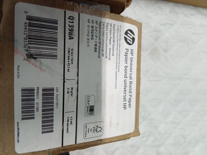 HP graphics line of coded papers are the perfect solution to meet your needs For HP DesignJet Printers Selling in bulk, six rolls, please see photos for measurements or send a message asking about individuals. Description: Produce Rich color accurate lasting prints and deliver on quick turnaround times HP heavyweight coated paper is ideal for color accurate prints working comps and design proofs and offers excellent hand ability rule or stack time sensitive documents as soon as they come off the printer and to help you meet the environmental objectives of your company and your clients this FSC certified recyclable paper supports responsible Forest management worldwide.