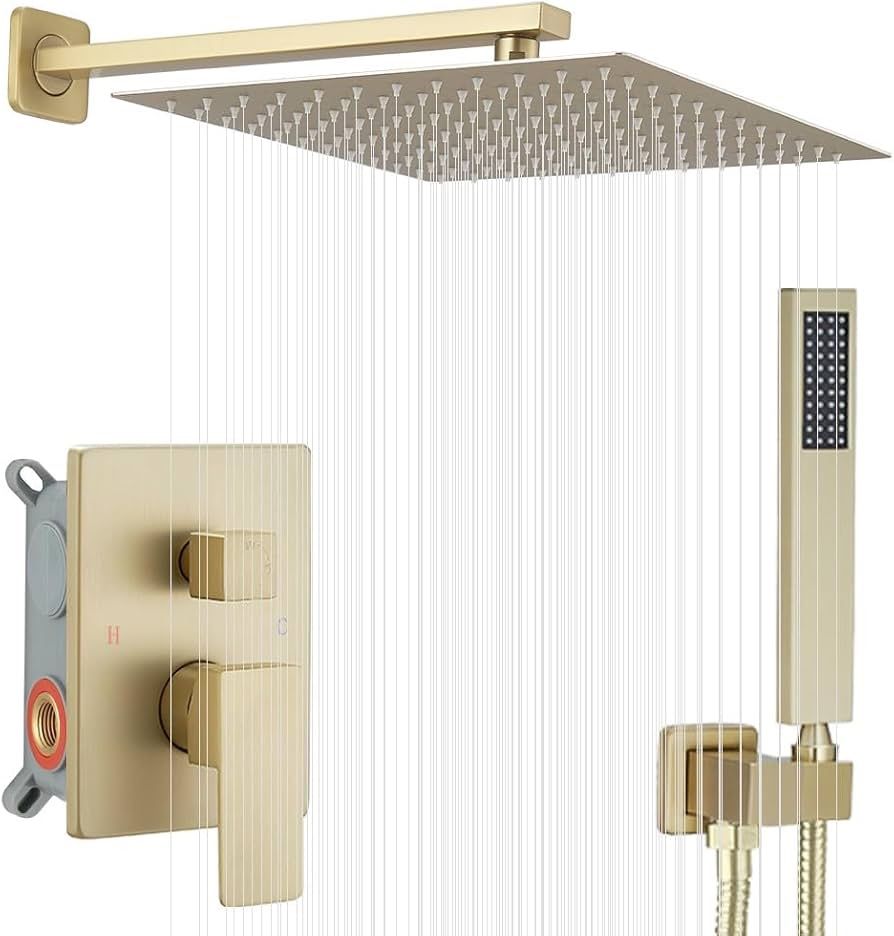 Brushed Gold Shower System 12 Inch Bathroom Luxury Rain Mixer Shower Combo Set