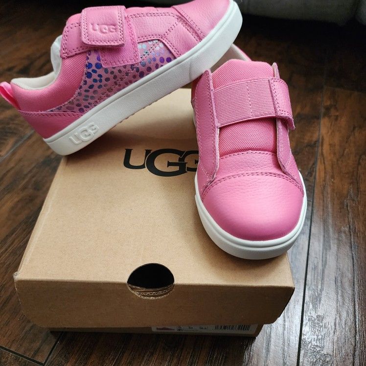 For sale new in the box size 12 UGG girl shoes. $70 shoes for $45 Made from leather and suede with metallic rainbow spots, this stylish low-top offers the same versatility and comfort as our grown-up sneakers. Adding kid-friendly features like hook-and-loop straps for easy on-off, plus recycled antimicrobial lining to help keep little feet fresh, it's finished with a cushioned sole that's perfect for all-day play