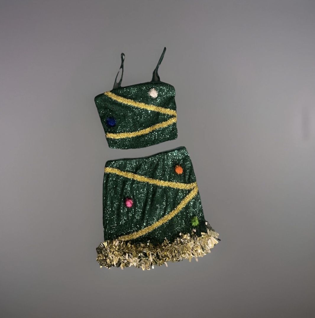 Love On A Women’s Green 2 Piece Cute Christmas Outfit Sexy Skirt Crop Top NWT