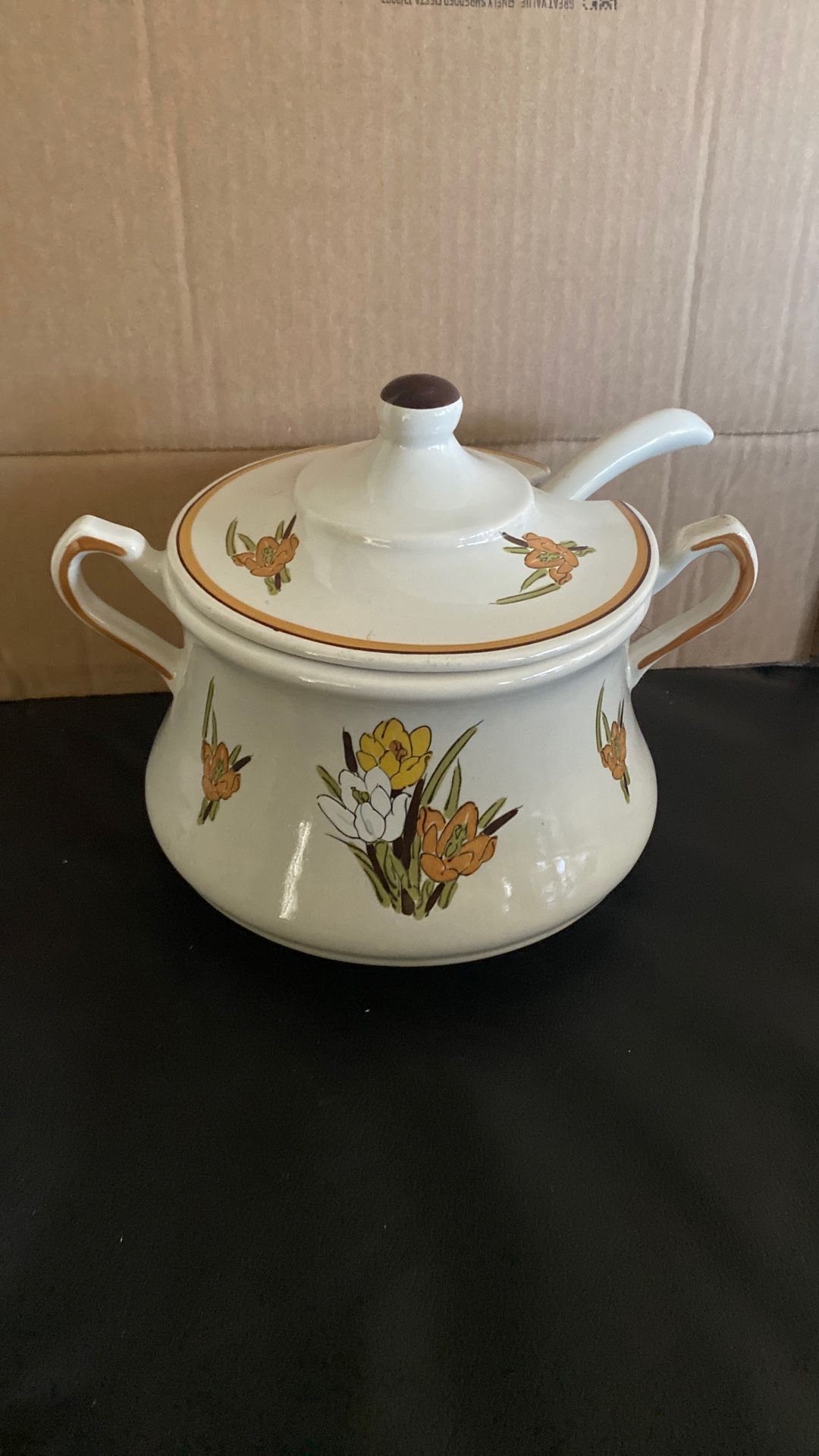 Vintage CA Orig Soup Tureen 3 pieces lid ladel pot . Never used . New! Model number 1038. Paid $65 will sell for 10
