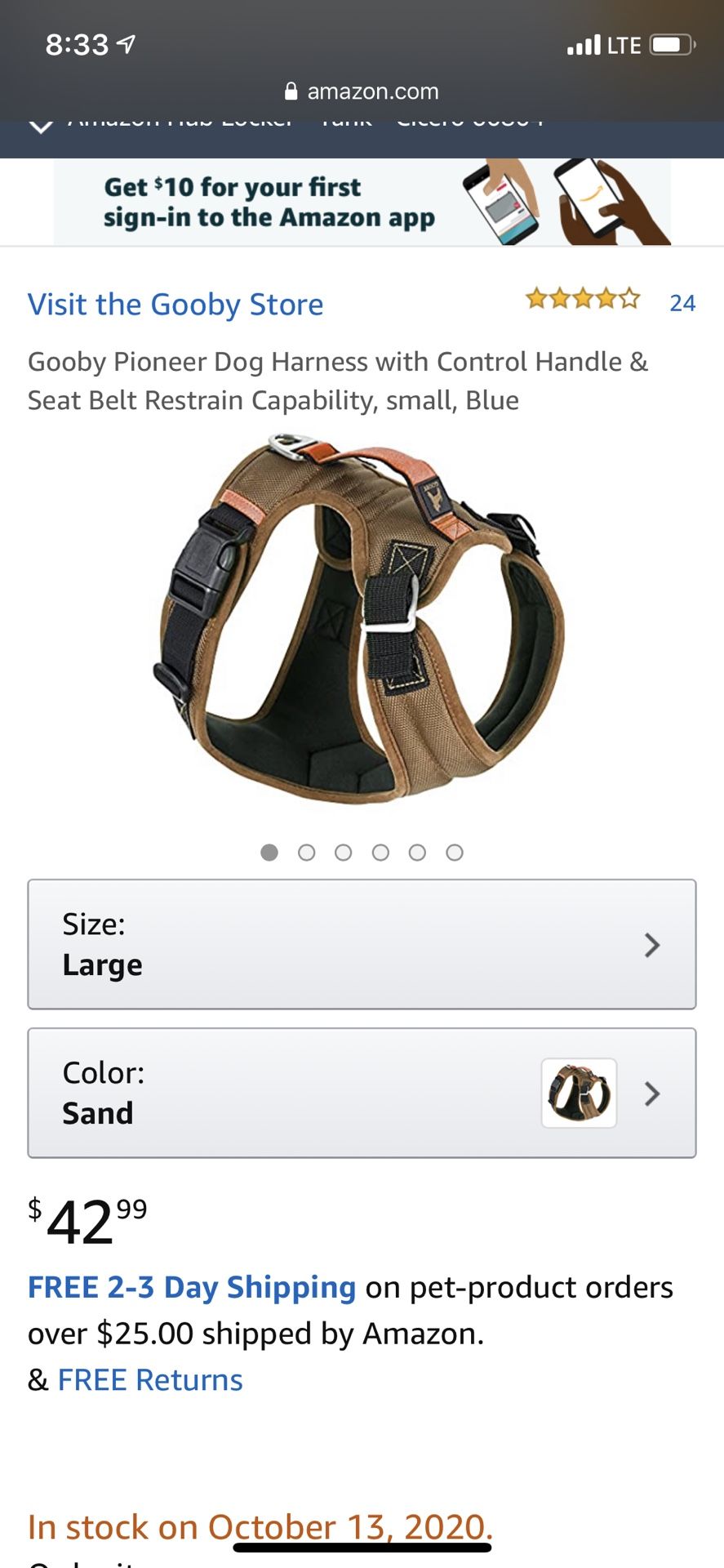 Gooby Pioneer Dog Harness- Brand new! Size: XL (20.5-24.8” chest; 15.35-22.44” neck) Did not fit my pitbull-lab mix, so definitely runs small, perfect for a medium sized dog or maybe a smaller bully. THIS IS AN OUTDOORS HARNESS-Perfect for the outdoors, comfortable, has a traffic handle and a front leash hoop. Retails for $42 on official website and for $42 for a Large on Amazon! Contact for more details.