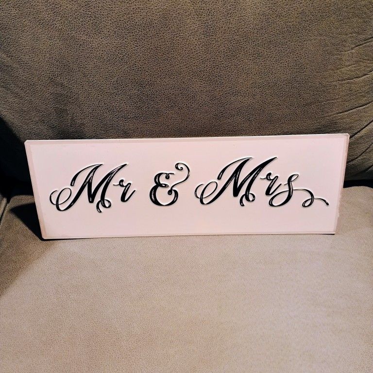 "Mr. & Mrs." metal wall decor sign (↕️H 5" ½ in. × ↔️ W 16" in.) PRICE BELOW 👇