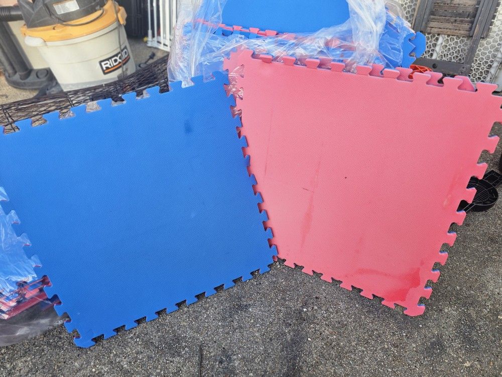 There's a total of 168 ft² will never been used outside always in door just ahead and nice size room each square is 24x24 it's two sided you could either choose blue or red or j Just checkerboard them All of them are in good shape the prices firm no offers please prices for all