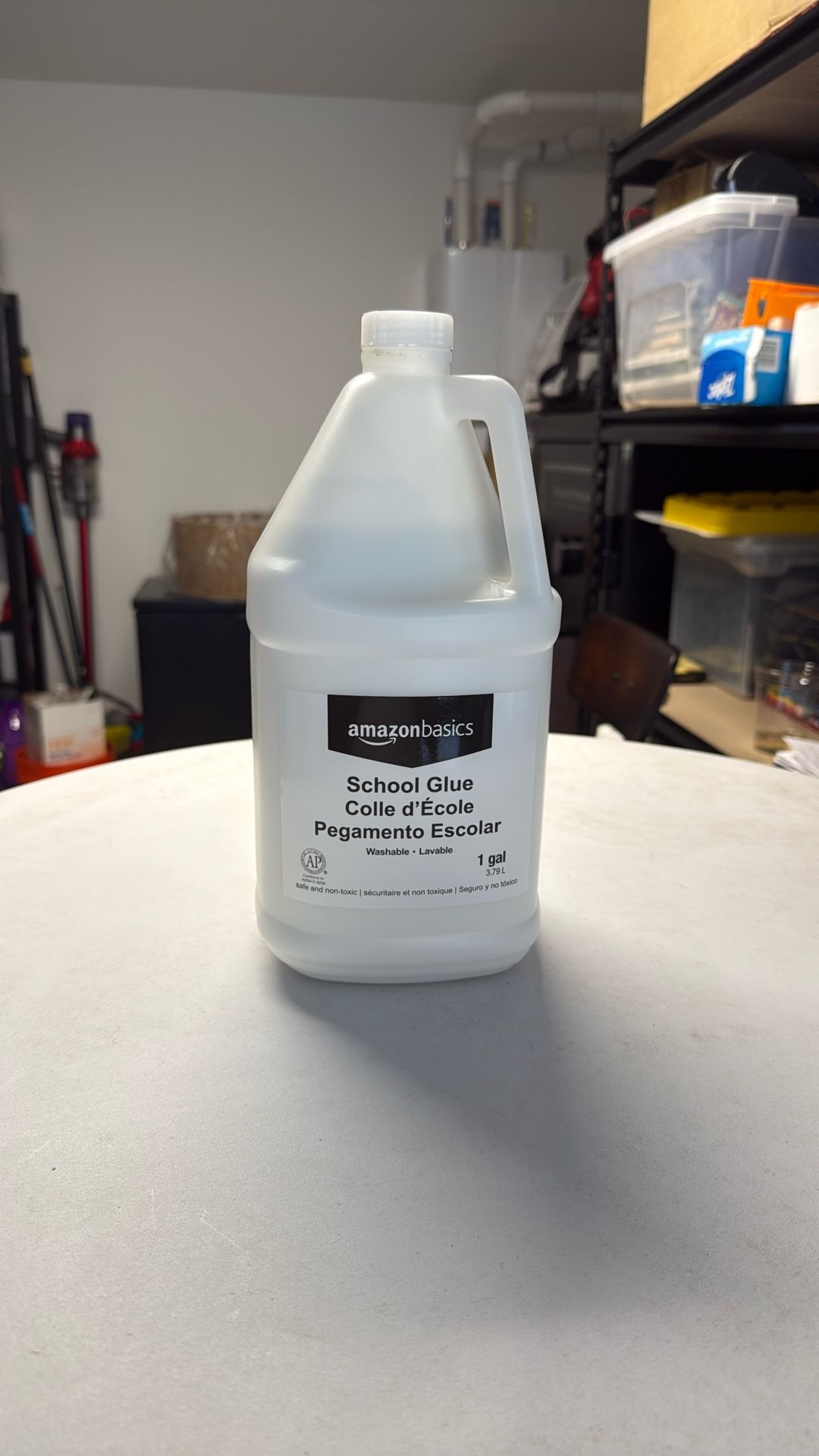 Amazon basic school glue 1 gallon ( 3.79 L. ) Washable lovable, full bottle.