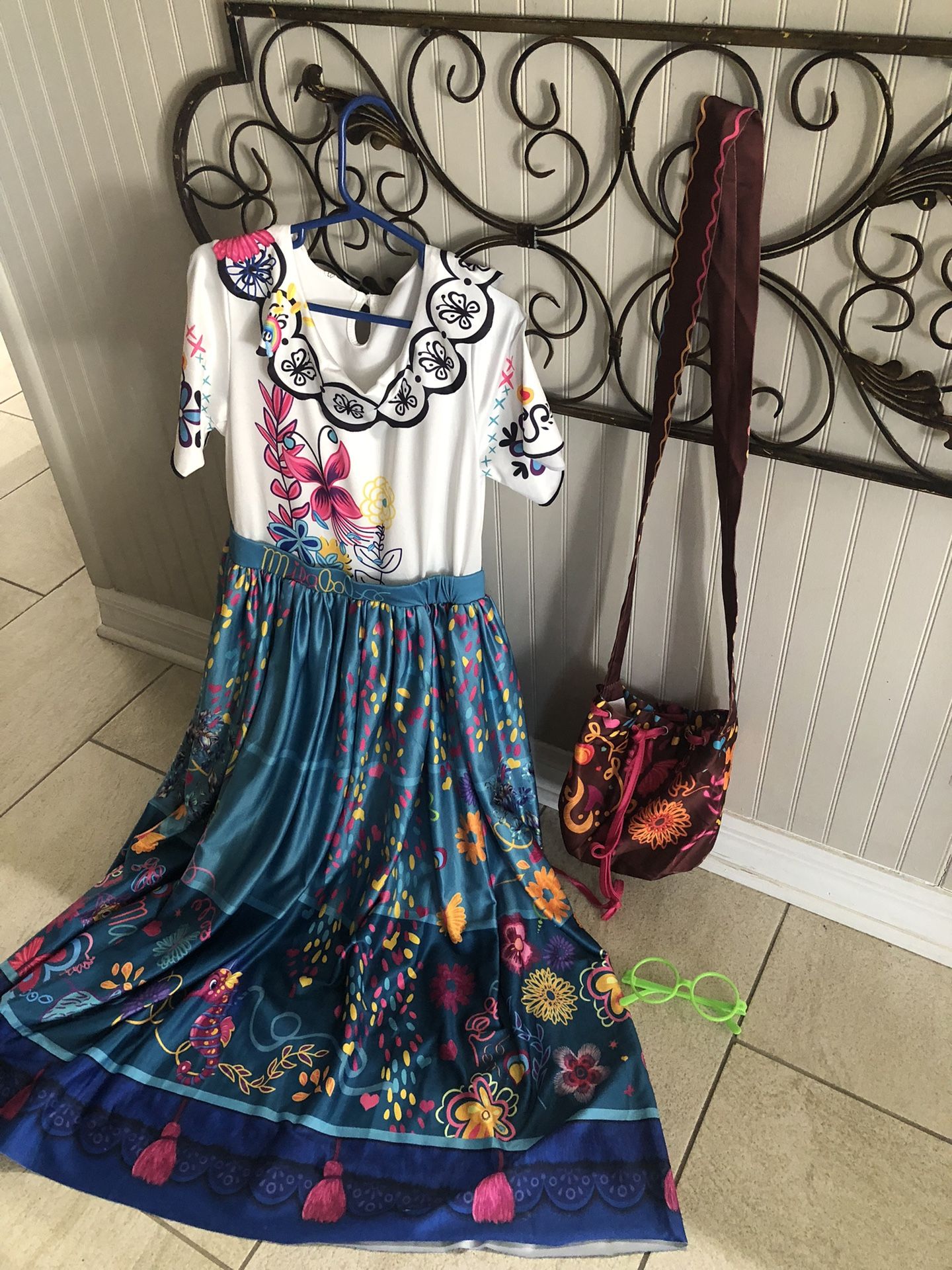Mirabel dress & crossbody bag/purse and her Green glasses! Smoke free home! Basically like brand new! Size Medium/Large! Beautiful costume for Halloween or just play!