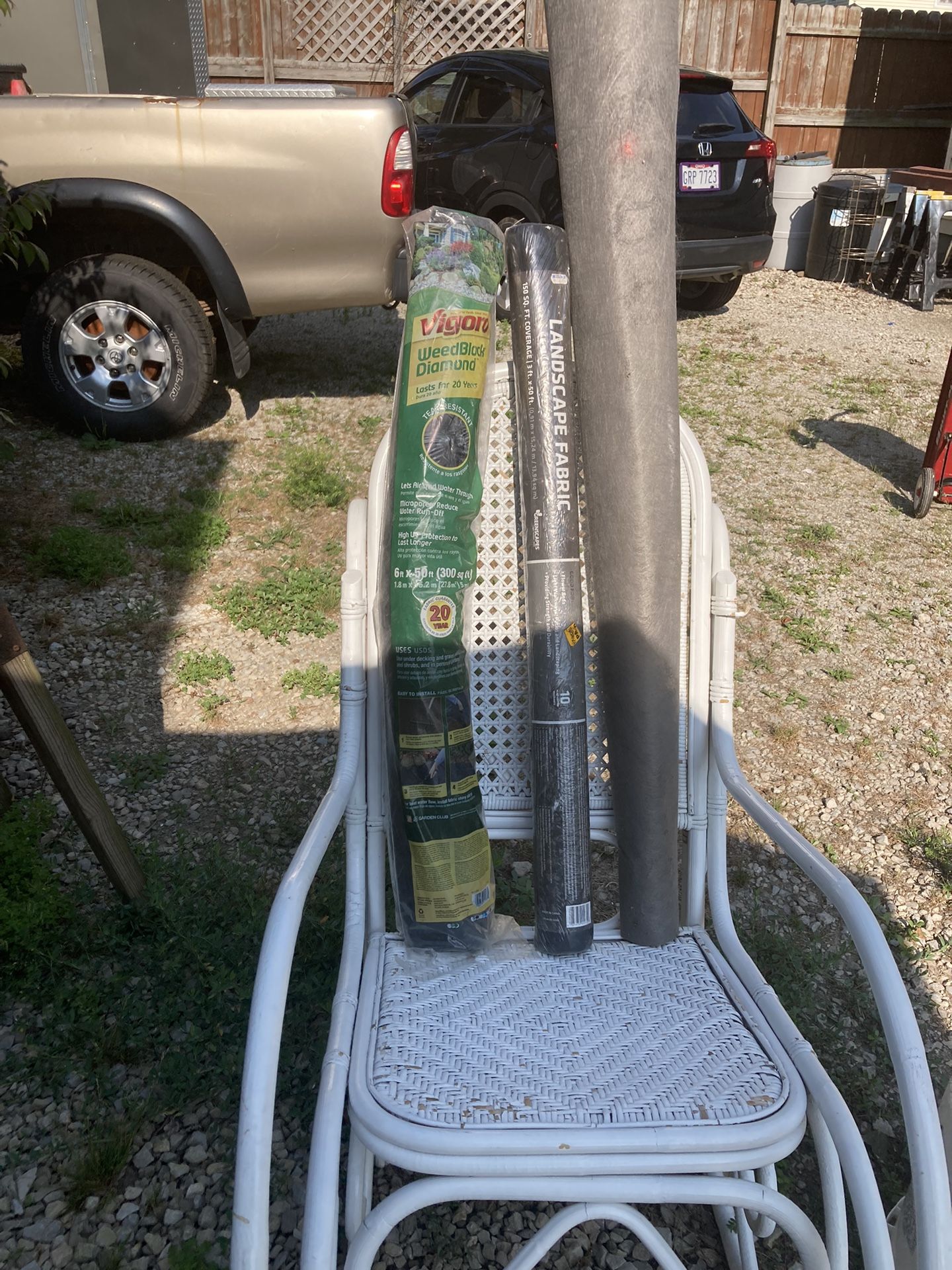 I have three different kinds of weed block but l am sure it all does the same thing. I have one row (VIGORO weed block diamond that is 6 x 50 And another row landscape fabric 3 x 50 and a small parcel row 4 x 10. Take all $ 15.00 in