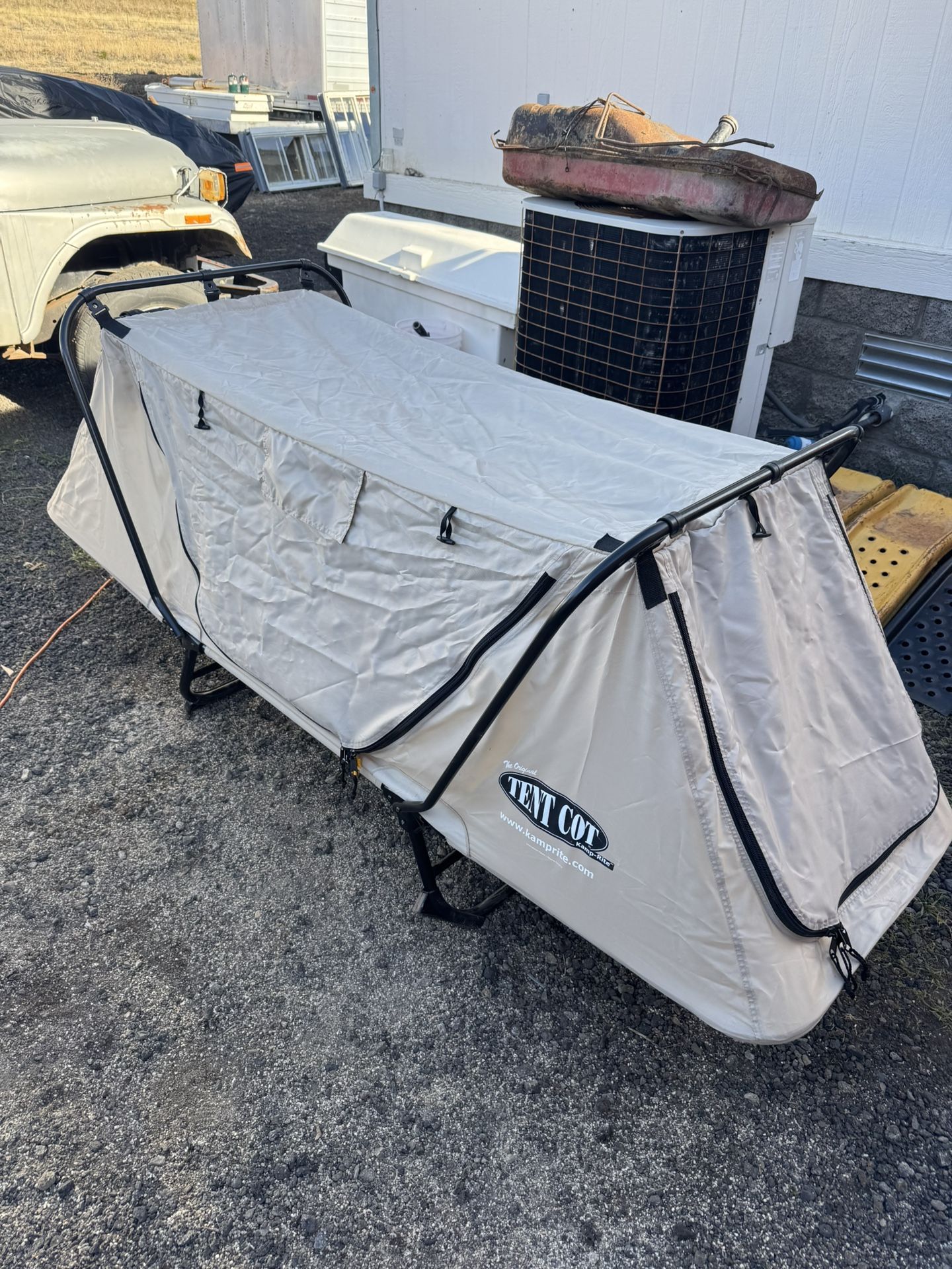 U.S. military tent cot Made by kamprite. Flame retardant material In great shape, light use.