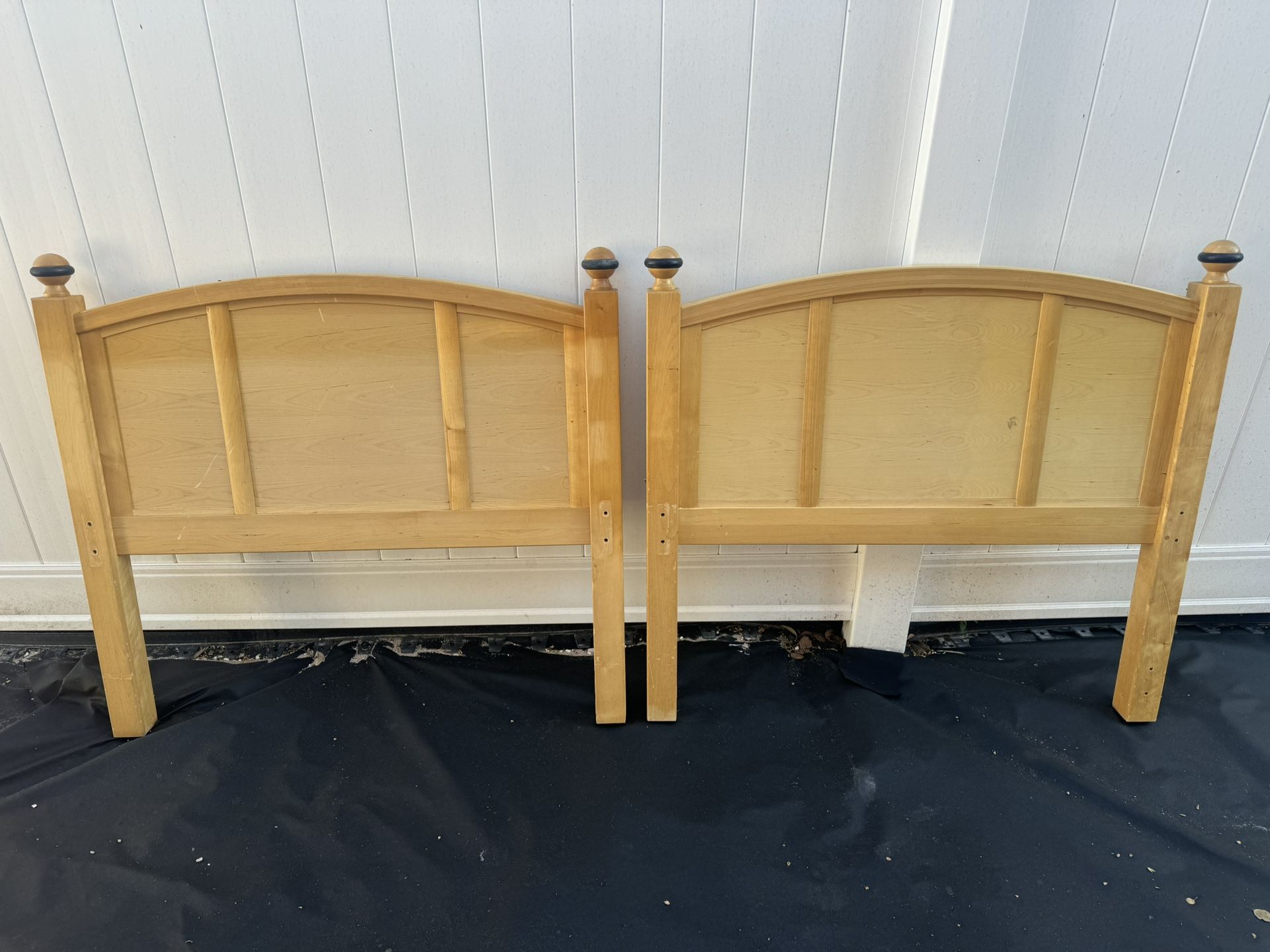 Early Black Friday Special: Two twin wooden headboards sets with metal rails in good condition are available for $149 or $80 each.