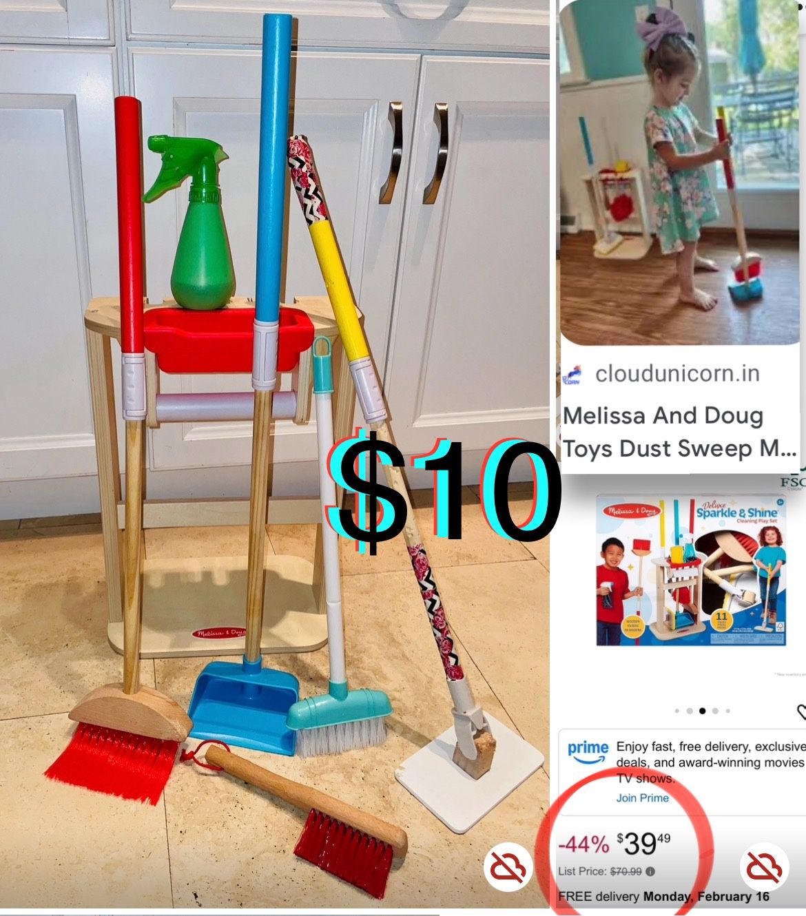 $10 Melissa & Doug Wooden pretending Clean sweep 🧹 and mop set plus accessories