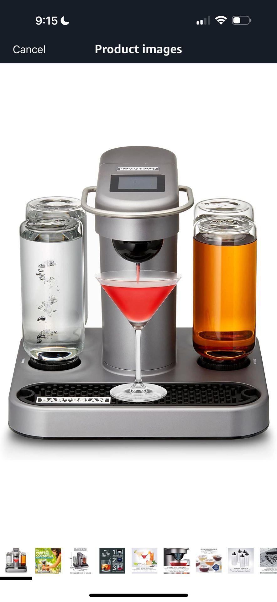 Bartesian Cocktail Machine + Storage Drawer for capsules + 12 days of holiday pack Material Stainless Steel Brand Bartesian Color Premium Machine Item dimensions L x Wx H 12.75 x 13.25 x 12.5 inches Included Components Cocktail Machine • INTELLIGENT COCKTAIL CREATION: Create endless craft cocktails in the comfort of home — no need to measure or pour. Just insert a cocktail capsule into your Bartesian drink mixer machine, select your preferred strength and press mix. The system draws the spirit from the appropriate reservoir and mixes your cocktail in seconds. • MIXOLOGIST-APPROVED DRINKS: Bartesian cocktail machine capsules were created by master mixologists and include the ingredients for favorites like margaritas, whiskey sours, old fashioneds and more. • VARIETY WITHOUT COMPLEXITY: Bartesian offers all the benefits of a fully-equipped bar, without the time and expense of stocking various juices, bitters, simple syrups and other ingredients. All you need to worry about is having your preferred whiskey, vodka, rum, gin or tequila on hand.