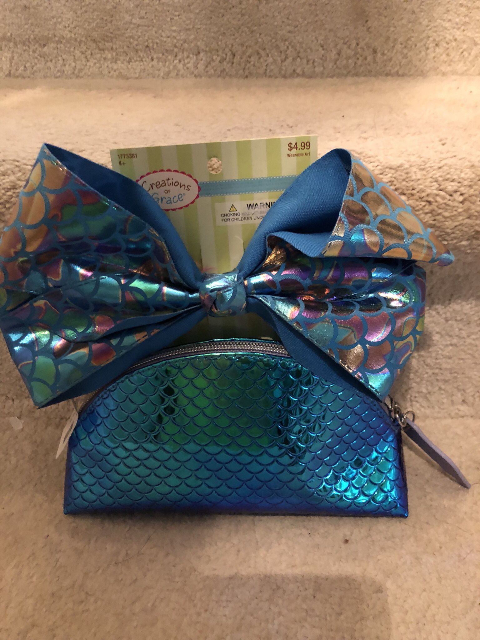 Cute little girl 2 piece hair bow and carry pouch set. Pretty blue.