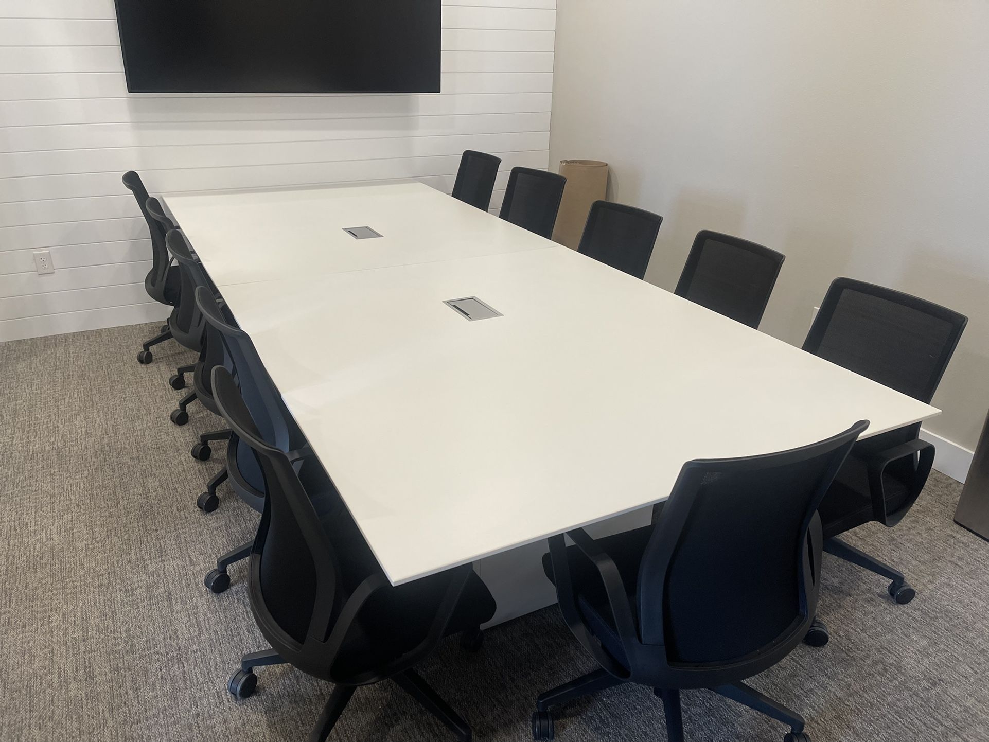 High end 12” conference table w power drop ins! Retails for $5000 11 keilhauer conference room chairs! Retails for $8000+ 75” Samsung commercial display Qm75F! Retails $3500+ Get all the above for a fraction of the price! $5250 for everything save over $13000 with this set. We offer installation for everything above for a low fee of $300. We have other size conferences tables and Commercial displays as well. We also have different colors as well! We have wall mounted conference tables available as well. Other items we have available: Standing Desks we have available: 60” white laminate- $300 Conset Chairs Available: Haworth Very Chairs ($275), Mobile Filing Cabinets Available: Haworth mobile filing cabinet ($150) Herman Miller White 2 door filing Cabinets ($100), Black 2D filing cabinets ($75) ,Green 2D filing Cabinet ($50) Monitor arms available: Herman Miller Flo single arm ($225), Humanscale M8 dual arm with crossbar ($150), Knoll Sapper dual arm ($175) Dell Monitors available: 34” Curved monitors $700 (3419W) 27”: 4k Ultrasharp u2718Q ($359). 23”: P2319h ($115), P2317h ($80), and P2314ht ($65) We have business lounge furniture available as well!