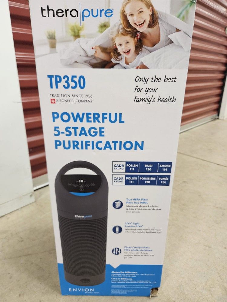 Envion Therapure Air Purifier TP350 $115 Firm, New The TP350 is a high-quality air purifier crafted by Envion. It effectively enhances the healthiness of your home's air. This state-of-the-art machine doesn't just operate in your room—it actively converts it into a sanctuary of clean air. Built with exceptional care and offered at an affordable price, the TP350 showcases Envion's dedication to top-tier quality. This device excels in removing dust and other pollutants from your air, contributing positively to your overall health. It's more than just a gadget—it's a tool that assists in maintaining your wellbeing. Envion, a reputable manufacturer, consistently works to refine and elevate their air purifiers, ensuring they continue to meet customers' needs. The TP350 embodies these improvements, thereby raising the bar in terms of what clean air should feel like. Bearing in mind the critical importance of your health, the TP350 is engineered to make your indoor air noticeably cleaner and safer. Opt for the TP350, embrace Envion, and you're sure to appreciate the refreshing difference in your indoor air quality.