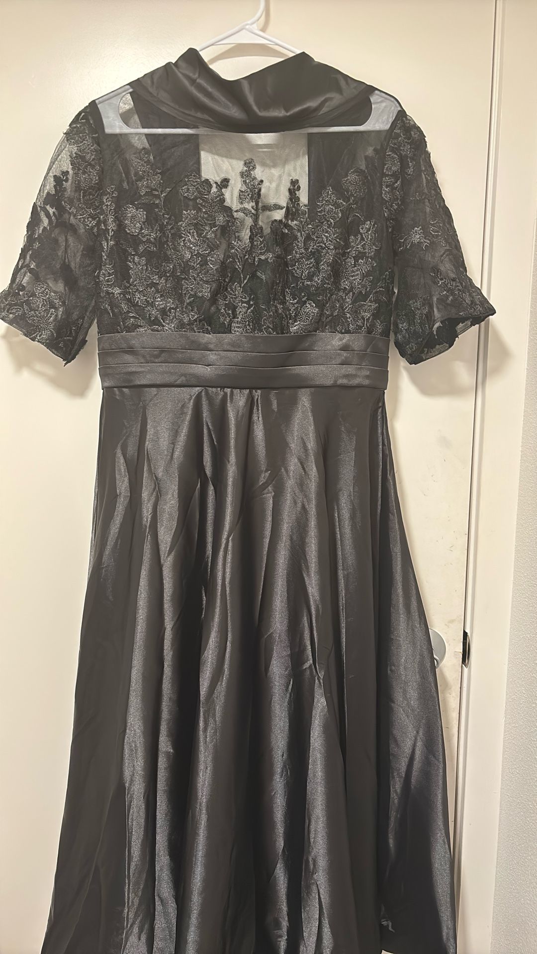 SIZE LARGE BLACK SATIN BOTTOM LACE TOP LACES UP IN THE BACK SHORT SLEEVE BRAND NEW NEVER WORN GREAT FOR WEDDING FORMAL EVENT FIGURE FLATTERING