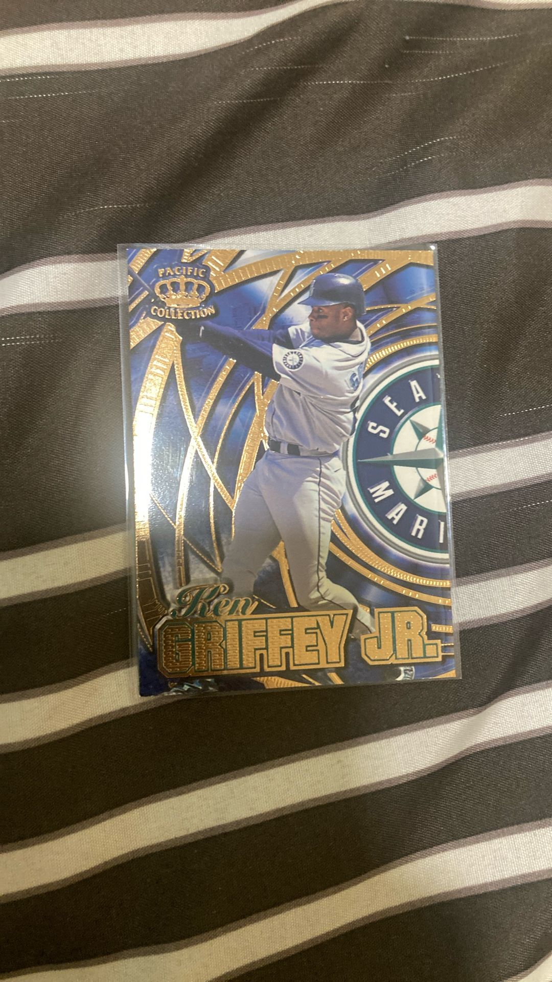 The 1997 Pacific Crown Collection Jardinero Ken Griffey Jr. #SH-6A trading card features the legendary baseball player in his Seattle Mariners uniform. This single sports trading card is part of the 1997 Pacific Crown Collection set, showcasing Griffey Jr. during the 1997 season. The card is an original, ungraded piece that would be a valuable addition to any baseball card collection. With its excellent condition and sport-themed design, this card captures a moment in baseball history with one of the sport's most iconic players.