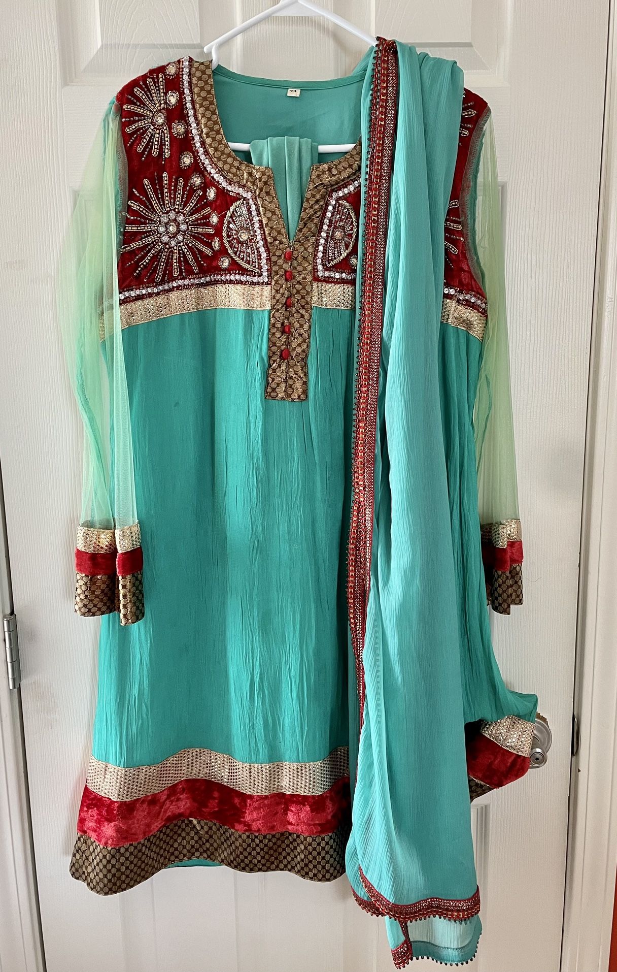 Full Indian M-L Top (Kurti ) and Pants, Scarf Outfit
