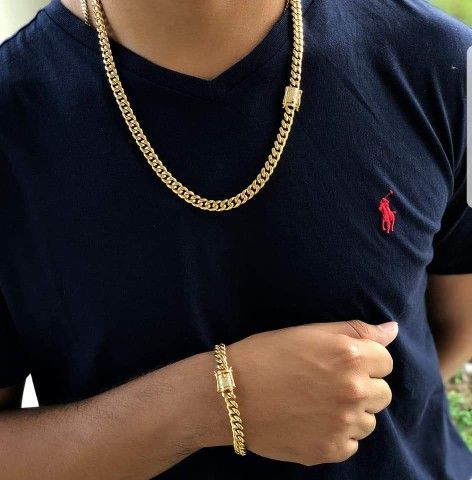 8MM Cuban Link Set 14K Gold Plated Doesn't Loses Color
