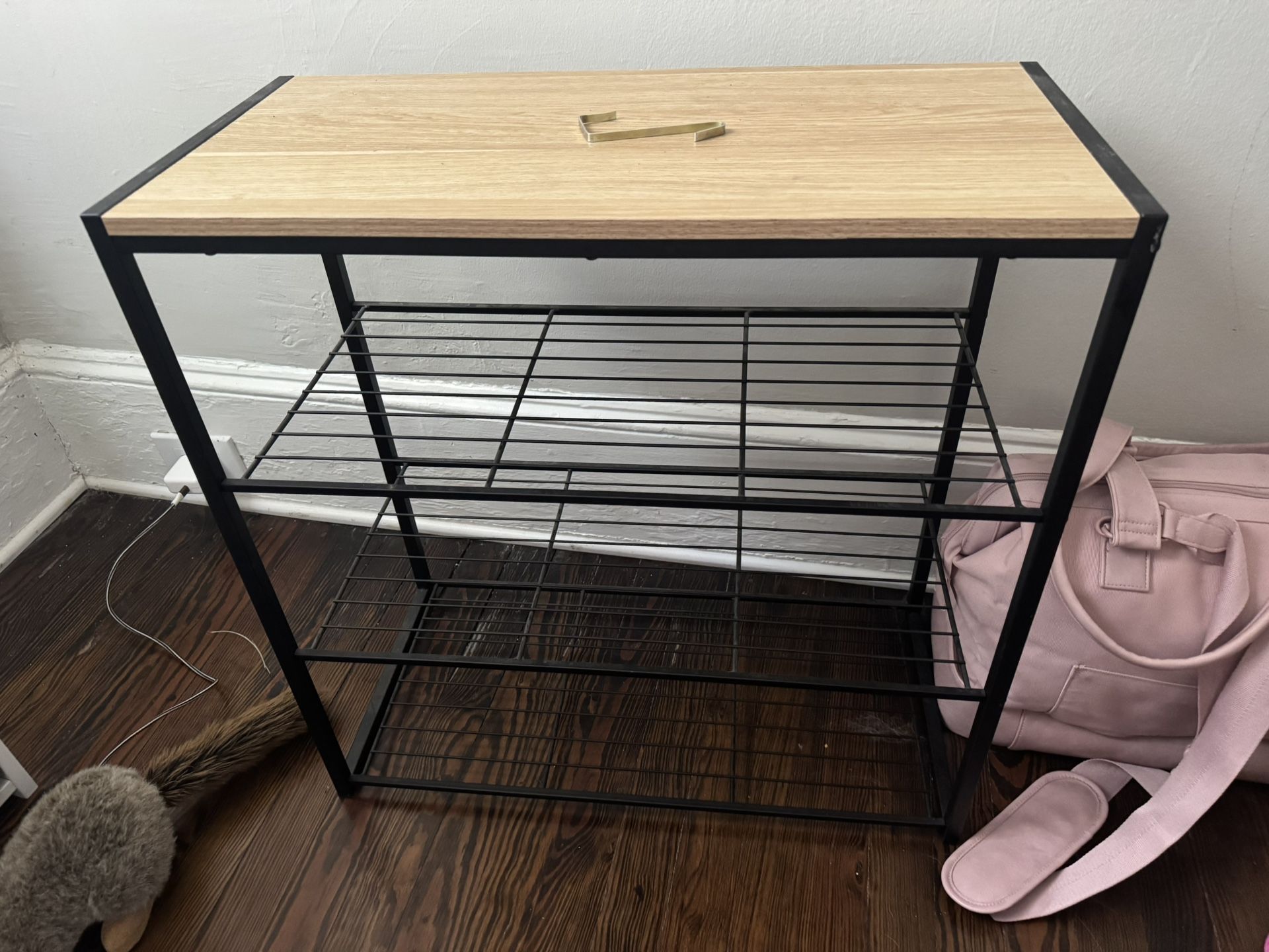 Brand new just purchased but doesn't fit my new space • Black metal shoe rack with natural wood top makes a stylish and functional addition to your home • 3 shelves plus wood top offer ample space for your shoes and other accessories • Open design provides easy access to your accessories • Easily integrates into your existing decor style Here is the original link https://offerup.co/faYXKzQFnY?$deeplink_path=/redirect/