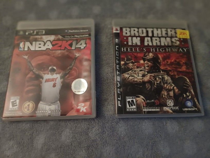 Selling NBA 2K14 for PlayStation 3. Comes with original case + disc, tested, and works great. One of the classic NBA 2K titles. Great for collectors or anyone still on PS3. PS3 Brothers in Arms: Hell’s Highway — WWII tactical shooter. Comes with case + disc, tested, and working. It's great for fans of old school war games.