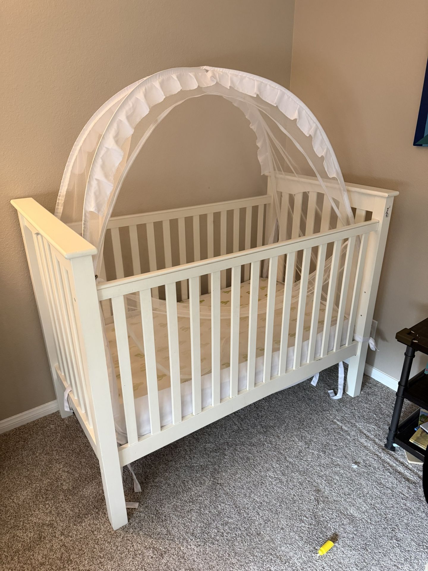 Crib in good condition. Zip-in tent makes it easy to ensure child doesn’t climb out. Includes all pieces and hardware but does not include the conversion kit. Also I’m including 4 sheets and 2 mattress covers. Website of item: https://offerup.co/faYXKzQFnY?$deeplink_path=/redirect/