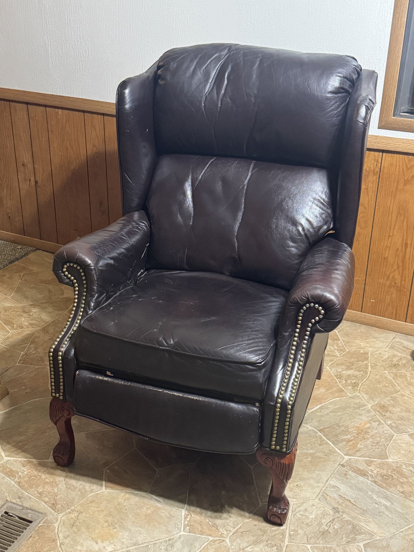 NEED GONE ASAP! Old recliner chair. Has cigarette holes in the seat but can be reupholstered if you want to go that route. $40 OBO Must pick up. Located in Rapid City.