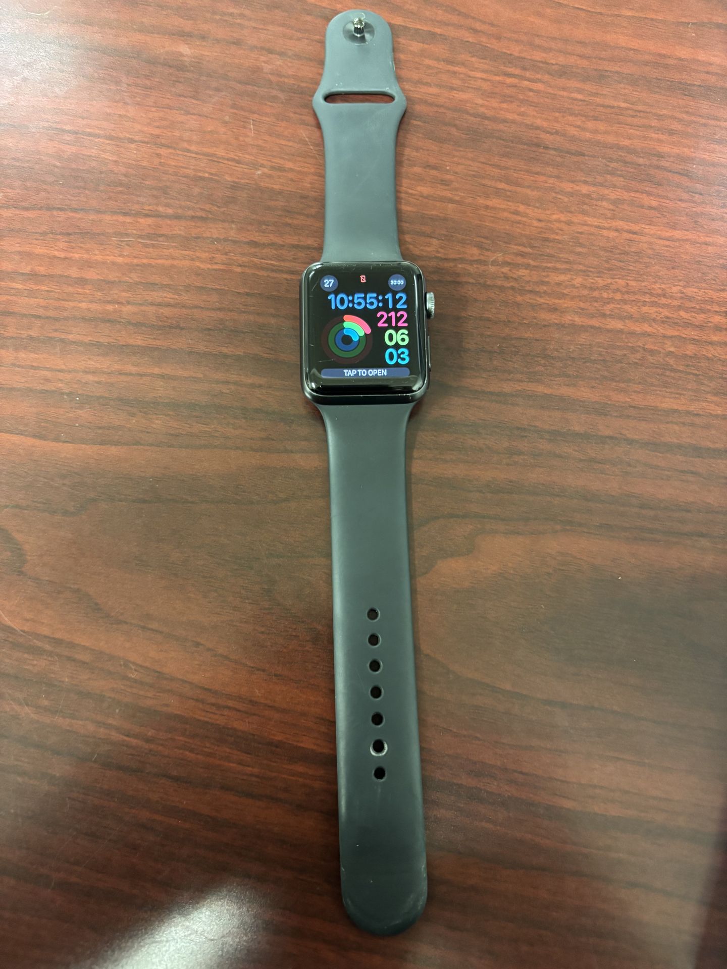 Apple Watch Series 3 (42mm) in good working condition. Fully functional with no issues screen, buttons, and touch all work perfectly. Comes with black sport band as shown in photos. Great for fitness tracking, notifications, calls, and everyday wear. Charger included