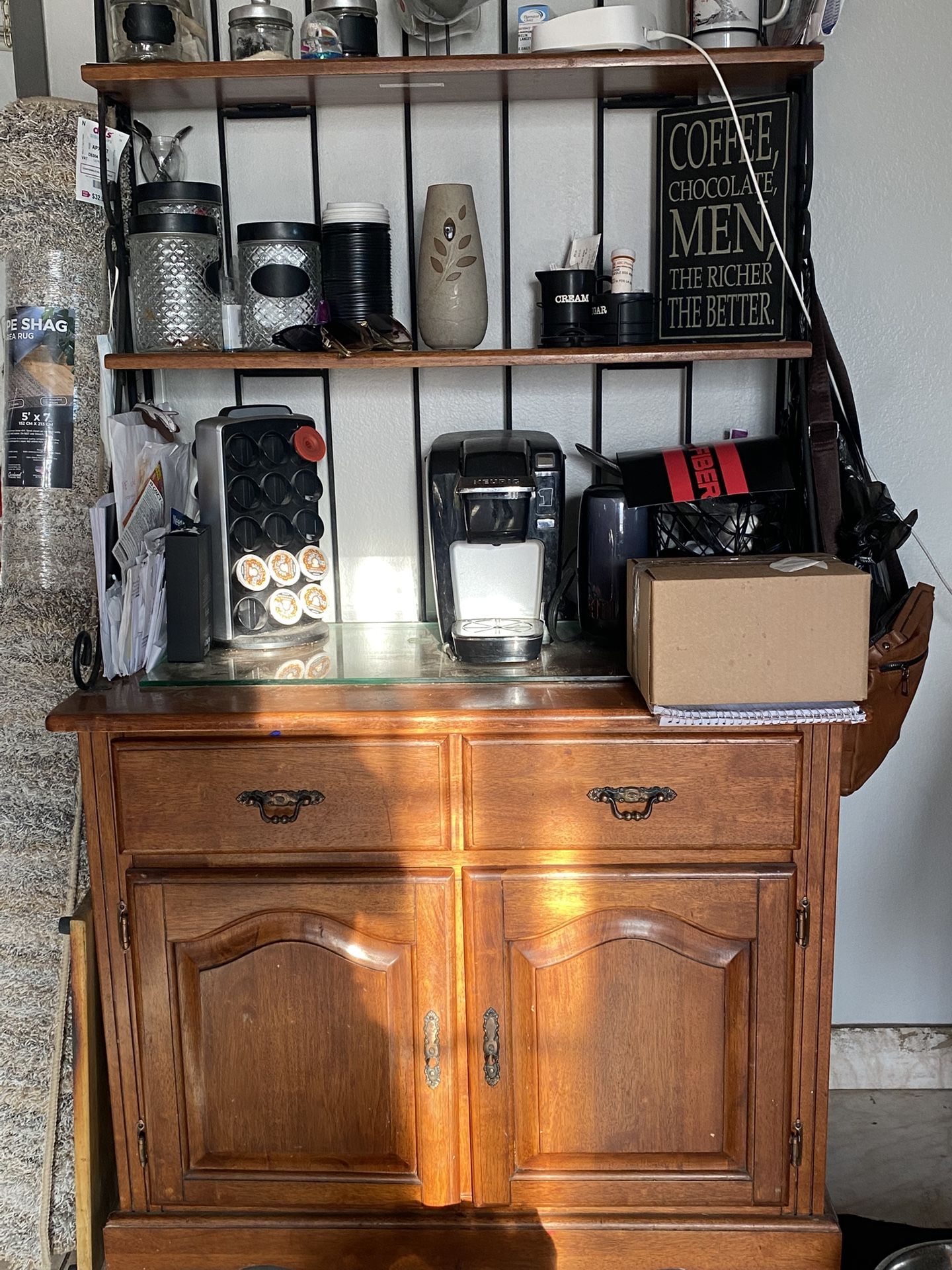 Bakers Rack And Electric Fire Place