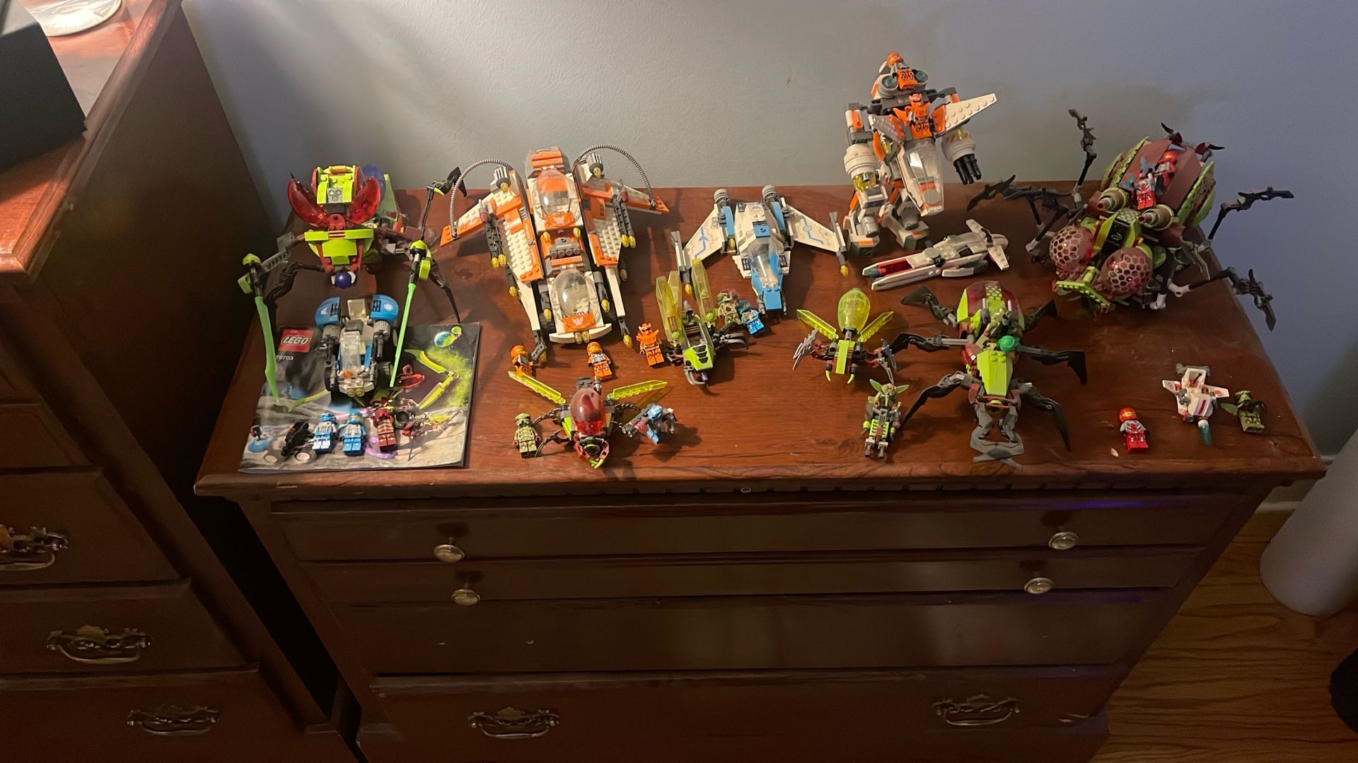 Sets are dusty. Local meet ups only. Sets are 98-99 percent complete. Any questions please ask. Sets listed below 70707-CLS-89 Eradicator Mech. 98 percent complete. All mini figures. Has box and instructions. 70703- Star Slicer. 99 percent complete. All mini figures. Has instructions. No box. 70705- Bug Obliterator. 98 percent complete. All mini figures. No box or instructions . 70706 - Crater Creeper. 98 percent complete. All mini figures. No box or instructions. 70708- Hive Crawler. 99 percent complete. All mini figures. No box or instructions. 70701- Swarm Interceptor. 99 percent complete. All mini figures. No box or instructions. 70700- Space Swarmer. 99 percent complete. All mini figures. No box or instructions.
