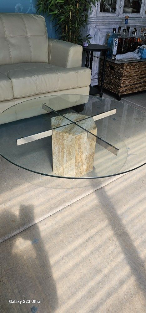 Vintage Coffee Table Italian Polished Travertine Marble Coffee 42x14.5 High
