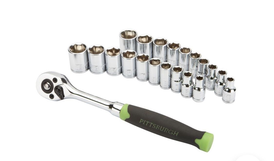 This high visibility 1/4 in. socket set features easy-to-read markings so you spend less time looking for the right socket and more on the task at hand. The rugged chrome vanadium SAE and metric set includes a quick-release ratchet with reversible 72-tooth gearing and a cushion grip to reduce hand fatigue. Triple chrome plating helps fight rust and corrosion. 72 tooth quick-release ratchet with comfort grip High visibility socket markings Durable Chrome vanadium steel construction