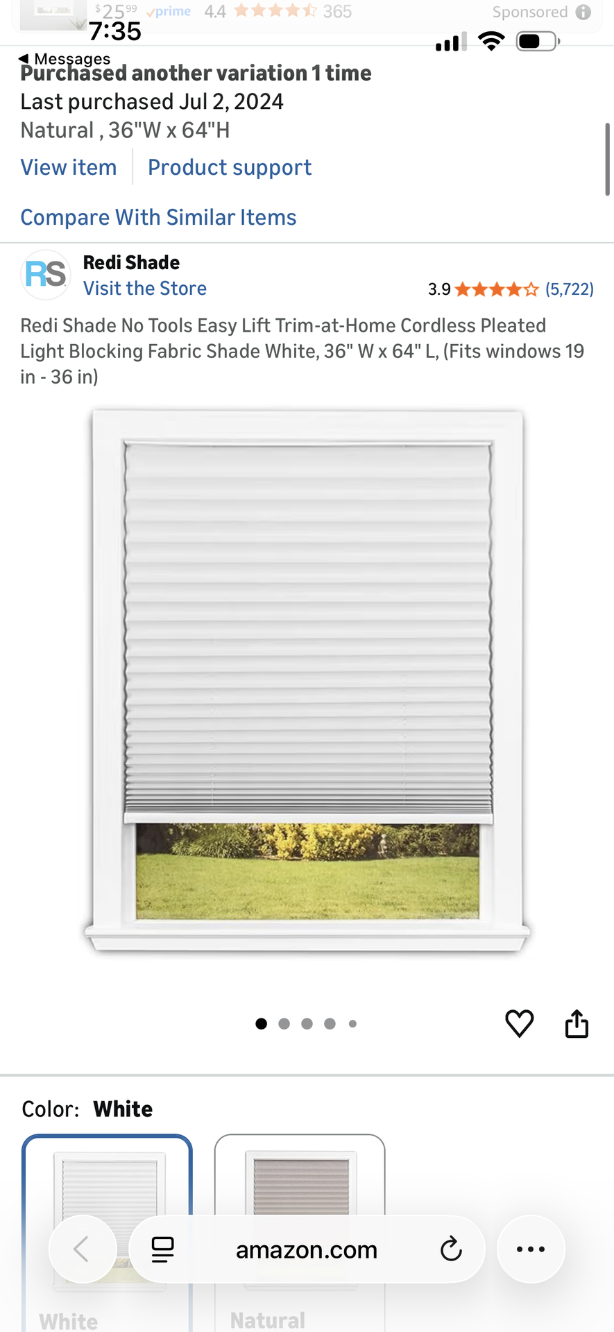 2 blinds Brand new Redi shade Trim at home Pleated White Light blocking 36” W x 64” L Fits windows 19”-36”