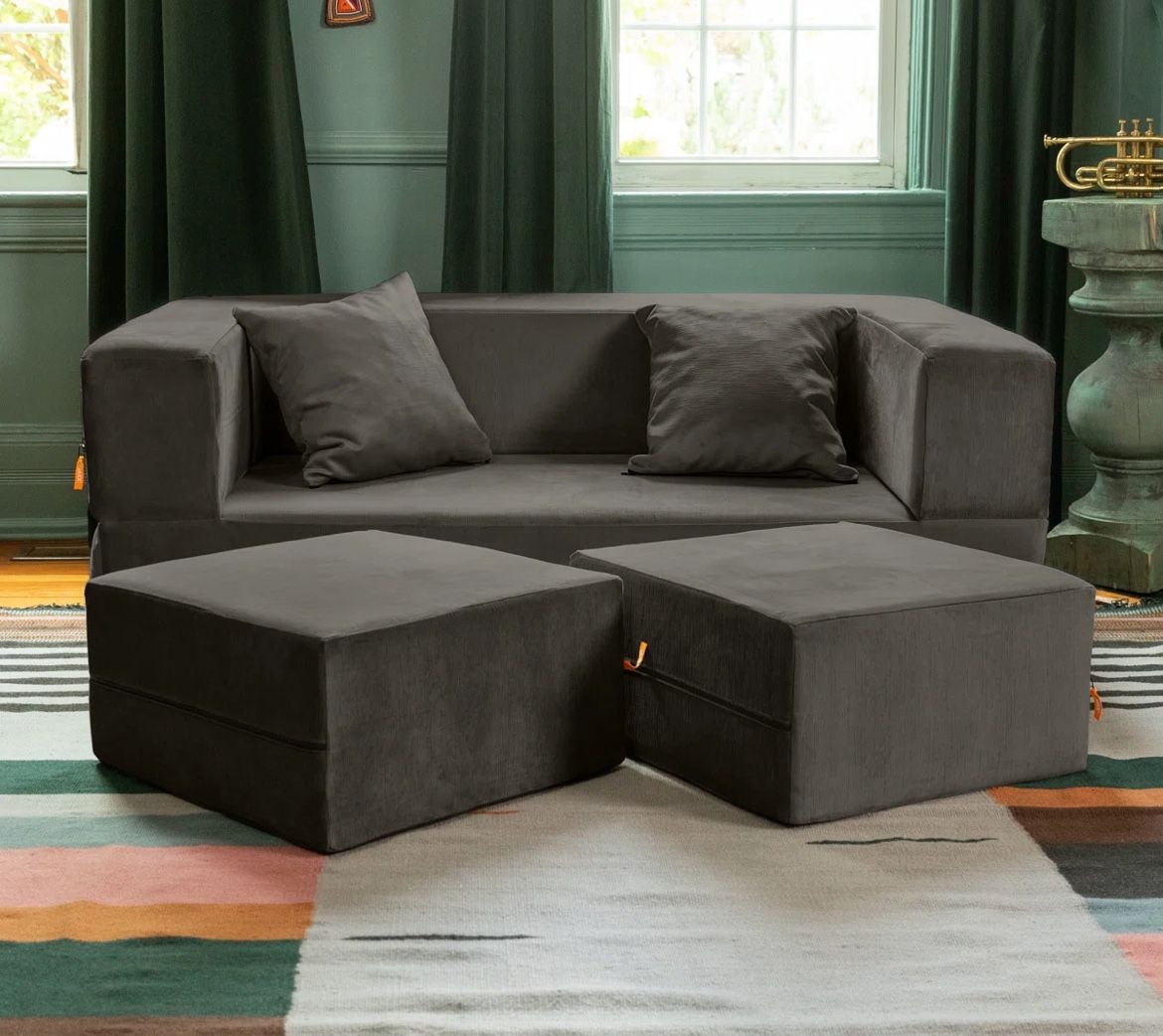 Shontae Zipline Convertible Sleeper Loveseat & Ottomans, Textured Microvelvet Couch