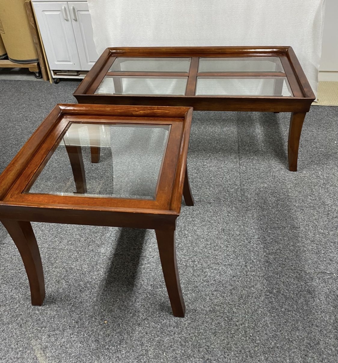 Coffee Table and End table Glass top inserts Coffee table-51.75 x 30 x 20h End table-26 x 26 x 24h CASH ONLY. All Sales Final.