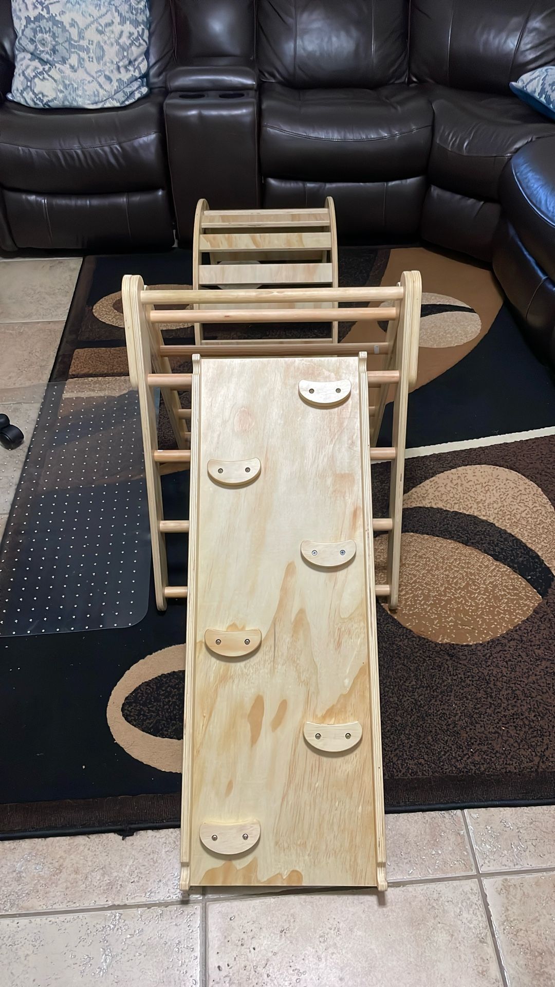 This is a Pikler triangle set, which is a type of indoor climbing toy for toddlers and young children. My child loved it, just outgrew it. It’ll make a great gift! Already setup! Smoke/pet free home.