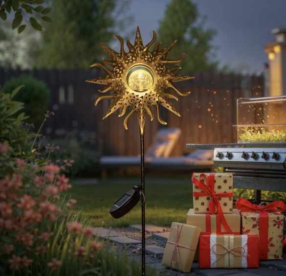 Solar Lights Garden Outdoor Decorative,LED Sun Decor Waterproof Metal Stakes,Solar Powered Art Crackle Glass Globe Lights for Walkway,Yard,Lawn,Patio Decoration