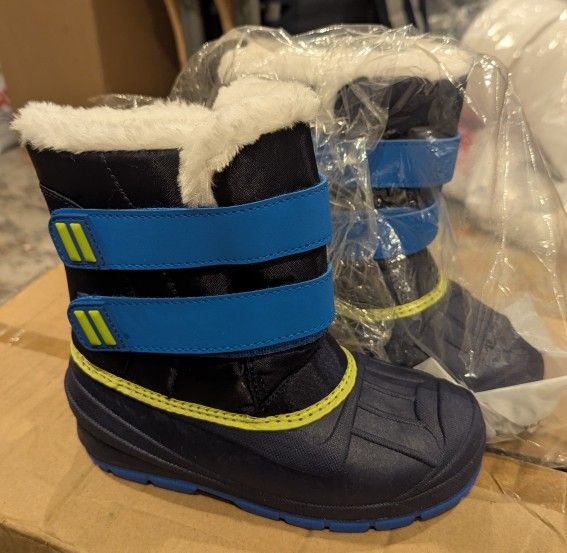 Kids Snow Or Rain Boots Brand new size 12 kids or boys color blue light green. They're furry in the inside. They are originally priced at $30. I'm asking $20 each pair I have 6 pairs all same size. Please let me know if you're interested. Thank you