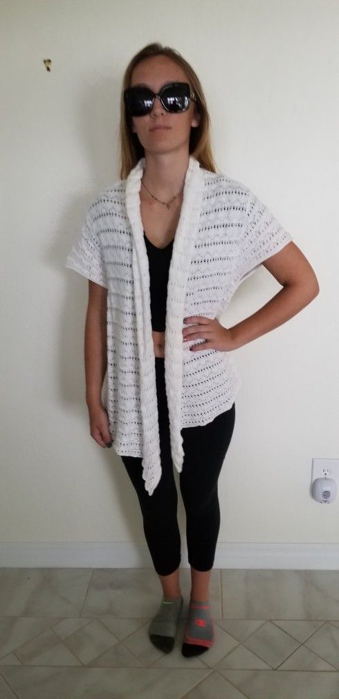 Stunning white crocheted embroidered jacket / shawl by Sonoma. Wash with warm water and lay flat. Size extra large. A hundred percent cotton. Brand new never worn. From a smoke free pet free home
