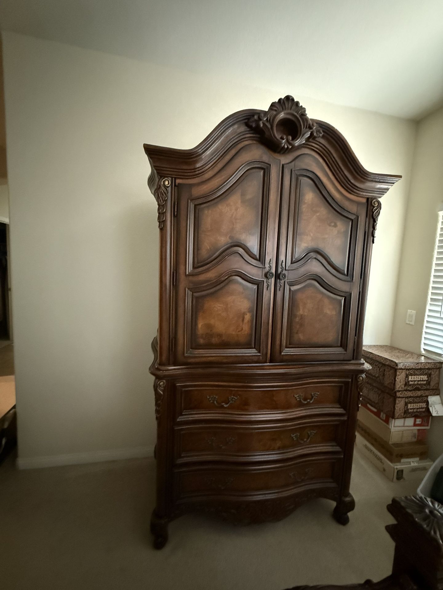 Used Armoire with 3 deep dresser drawers. Room for a 42 to 45 inch tv. Minimal scratches.